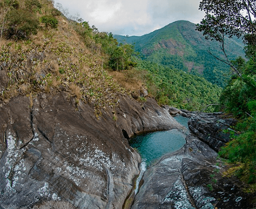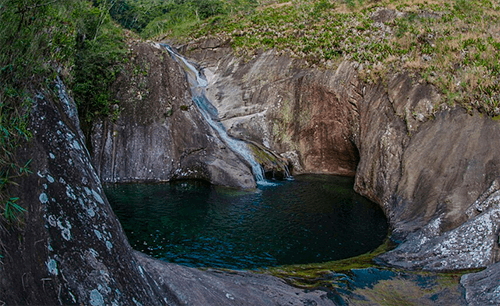 Um percurso que leva a uma sequência de pequenas quedas e piscinas naturais, perfeitas para descanso e contemplação da paisagem.