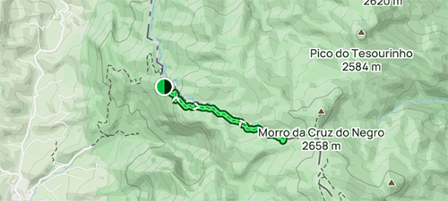 Essa trilha leva até o Terreirão, área de camping que funciona como base para quem deseja pernoitar antes de subir o Pico da Bandeira.