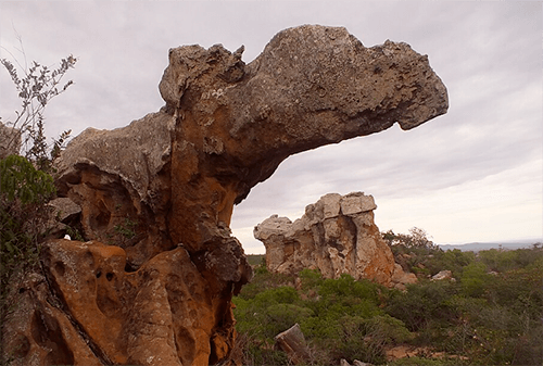 As formações rochosas, os vales e as grutas também abrigam espécies de fauna e flora adaptadas a esse ambiente desafiador.